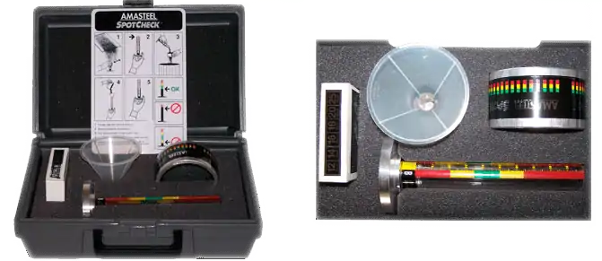 PosiTest AT, probador de adherencia desarrollado por DeFelsko, mide la fuerza requerida para halar de un diámetro de prueba específico de recubrimient...