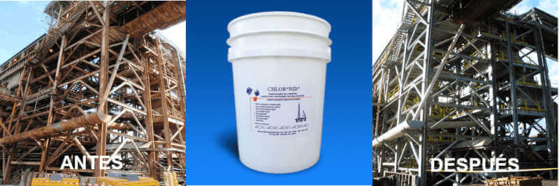 Es una mezcla química de vinculación orgánica que realiza la remoción y disolución de sales solubles (siendo los más comunes cloruros, sulfatos, y nitratos), no contiene ningún compuesto orgánico volátil (VOC) y es biodegradable, el uso de CHLOR RID es el método más económico y fácil para remover sales solubles contaminantes, la aplicación de CHLOR RID con agua en un proceso de hidrolavado es una actividad obligatoria en procesos de mantenimiento para reducir la corrosión y como parte de la preparación superficies metálicas, de concreto, madera, plásticos y otros materiales ferrosos y no ferrosos.