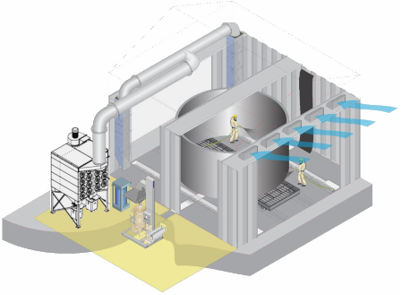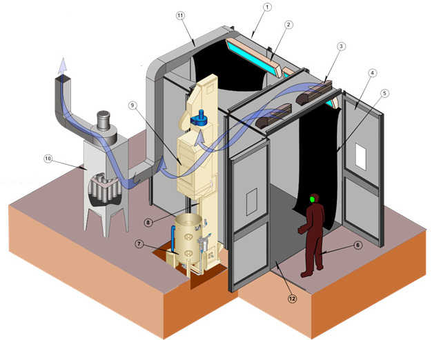 Los cuartos trabajan con cualquier tipo de abrasivo y garantizan altos indicies de producción. El proceso de reciclaje del abrasivo se realiza automática y simultáneamente con la operación de granallado, permitiendo el reinicio inmediato del trabajo cuando se agota la carga.