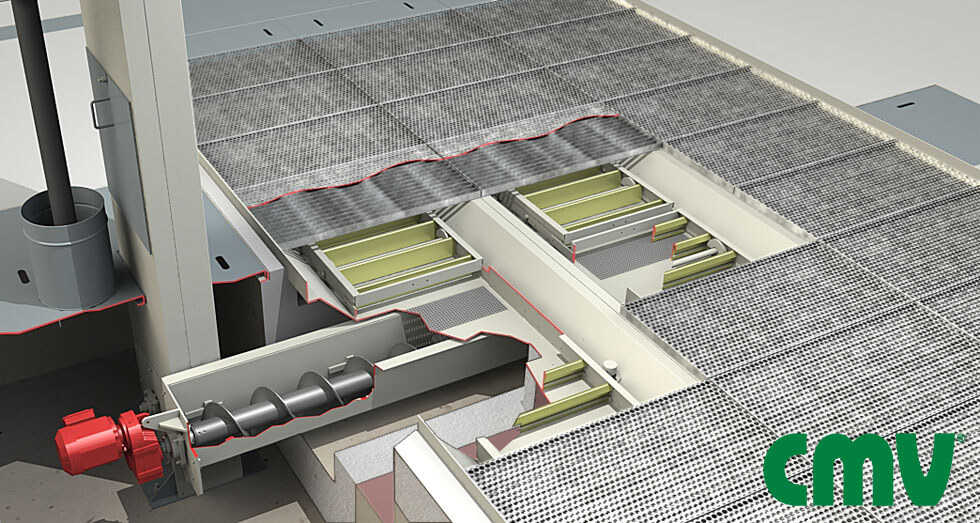Carros barredores y un tornillo sinfín transversal a la cámara de trabajo (central)