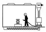 Conectado al purificador, recibe por gravedad el abrasivo purificado, tiene capacidad de 12.000 litros (250 toneladas), está equipado con una válvula de descarga, la cual es controlada por el sensor de nivel de la tolva de granallado