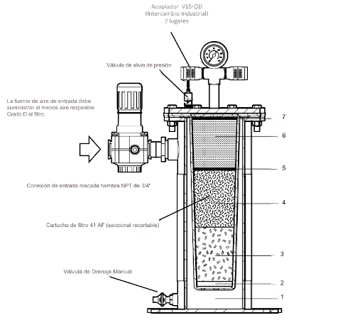 7. El fieltro respiratorio en la etapa final actúa como un filtro final antes de que el aire se transfiera al trabajador o a las herramientas impulsadas por aire