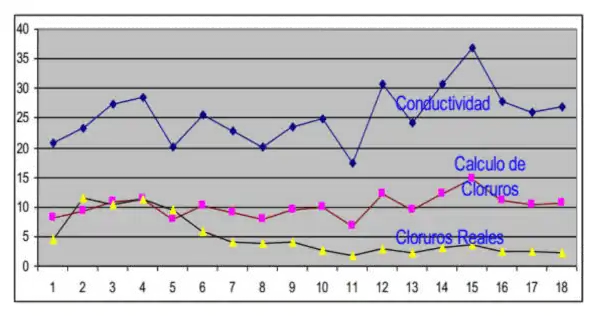 Las mediciones de Cloruros se toman en el rango de 0 – 60 ppm, Nitratos 0 – 50 y lecturas del colorímetro de 0 – 100 ppm (sulfatos).