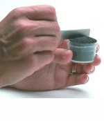 Tome una muestra de abrasivo en el contenedor suministrado.