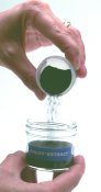 Vierta la muestra de abrasivo en el tarro de solución del Chlor*Test, tape de nuevo y agite el recipiente vigorosamente por 2 minutos. Deje reposar la muestra durante 5 minutos o hasta que aproximadamente ½ pulg de la solución quede clara en la parte superior del recipiente.