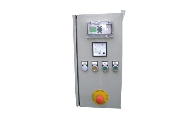 Montado en un armario blindado con grado de protección IP-54, posicionado en una estructura independiente de la máquina, posee un PLC con display en cristal líquido y un ZEV que registra el amperaje de la turbina en porcentaje. Está equipado con interruptores para freno de motor, botones de accionamiento y de emergencia patrón tipo CE.