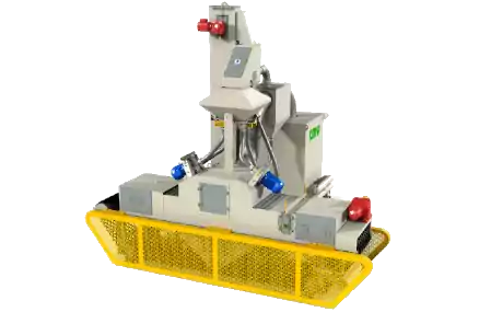 Máquina para limpieza externa de tubos de hasta de 10” de diámetro. Con sistema de limpieza por choro de abrasivo generado por turbina alta eficiencia, produce una superficie uniforme, con perfil de anclaje requerido y de costo operativo más bajo comparado con sistemas similares. Adecuada para producciones continuas y equipada con un sistema transportador de rodillos tipo bicónico (skew roll) a la entrada y salida, el cual ayuda a la tubería con los movimientos de traslación y rotación de forma simultánea.