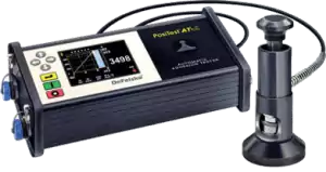PosiTest AT, probador de adherencia desarrollado por DeFelsko, mide la fuerza requerida para halar de un diámetro de prueba específico de recubrimientos o material de su sustrato usando presión hidráulica.
