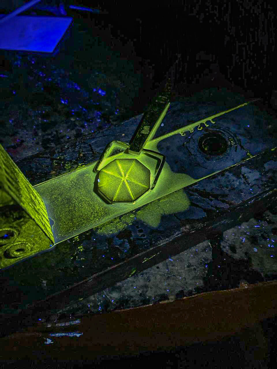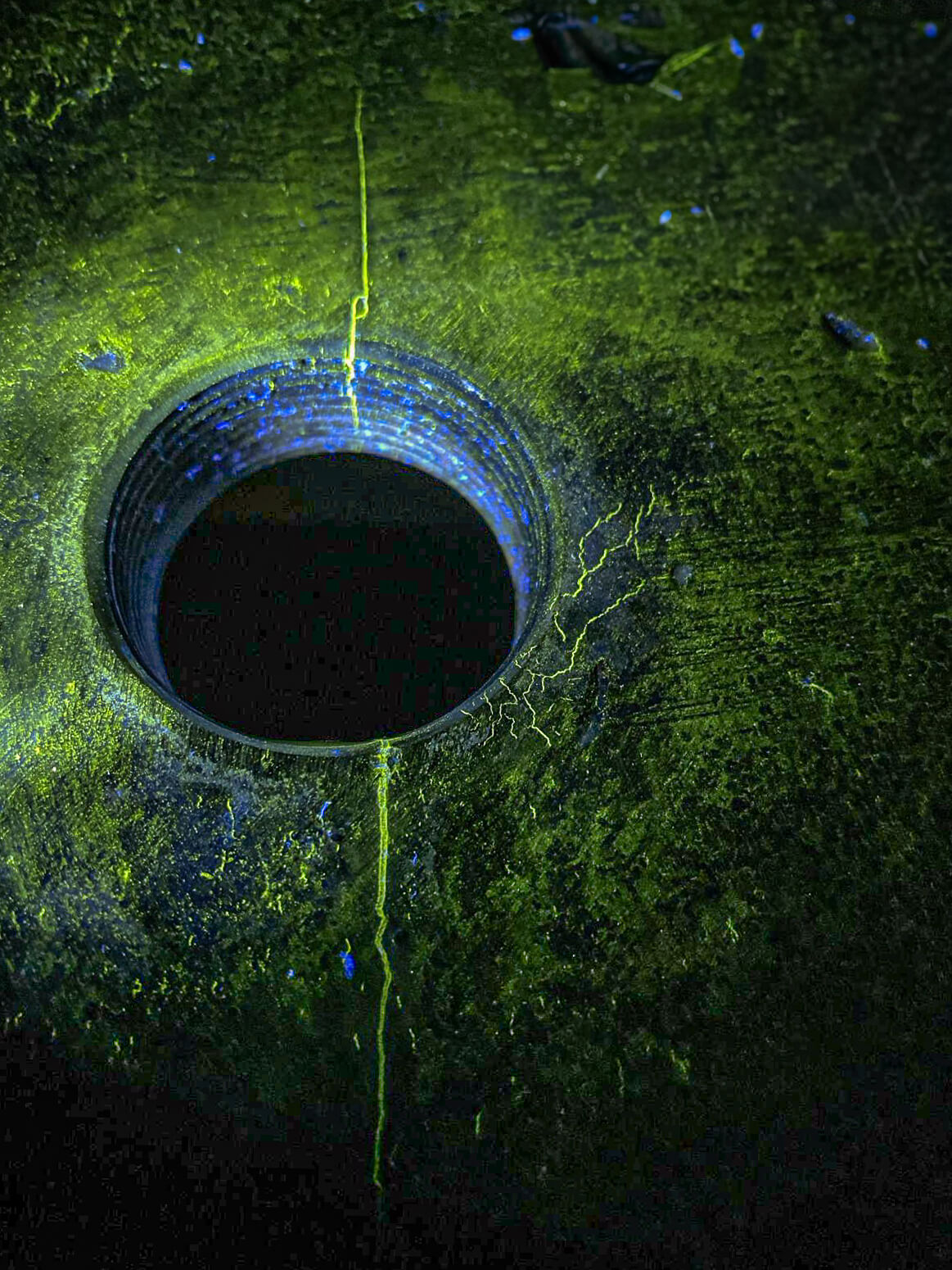 Realizamos evaluaciones de materiales y estructuras mediante la técnica de Partículas Magnéticas Fluorescentes (MT), un método de ensayo no destructivo que permite detectar discontinuidades superficiales y subsuperficiales en materiales ferromagnéticos.